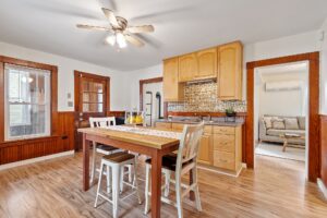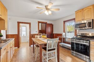 Welcome your guests from the renovated covered front porch into your living room with updated floors and interesting architecture. Love to cook? Flow seamlessly into the large eat-in kitchen with plenty of space, ample cabinets, plus gas stove and stainless steel appliances ready to prep and entertain.